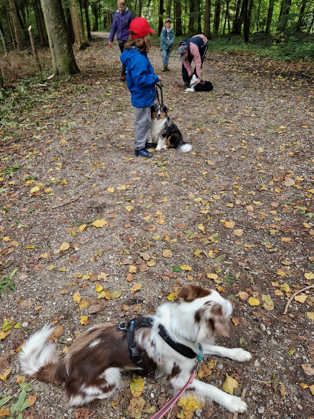 Wir üben in der Gruppe entspanntes Zusammensein mit Mensch und Hund , Alltagssituationen und lockeres Leinenlaufen. Im Freilauf lernen die Hunde dass jeder akzeptiert wird und dass man gemütlich zusammen entdecken kann.