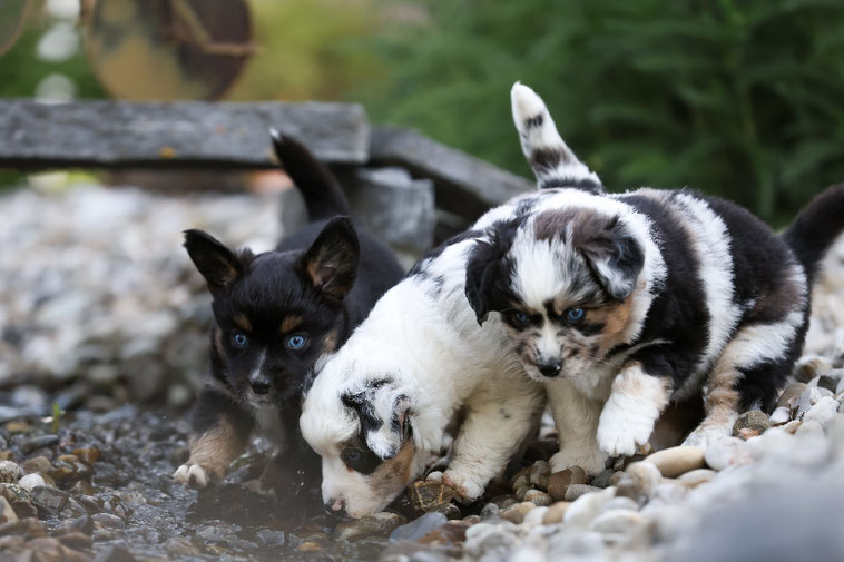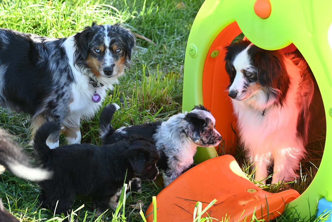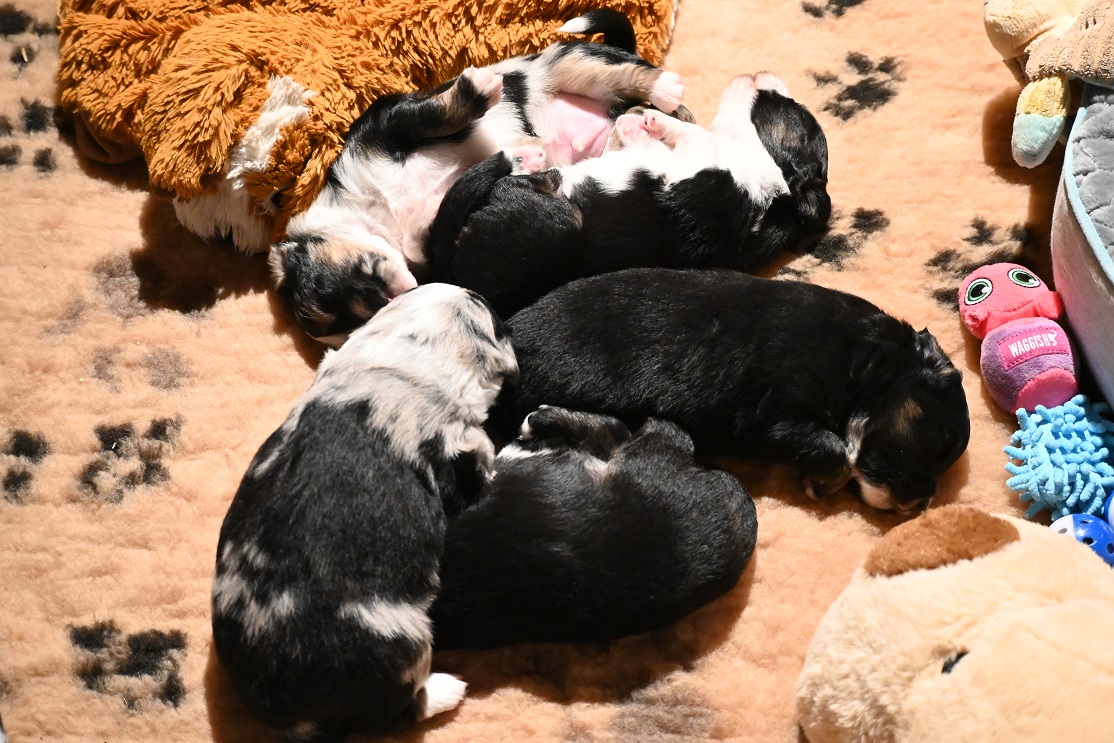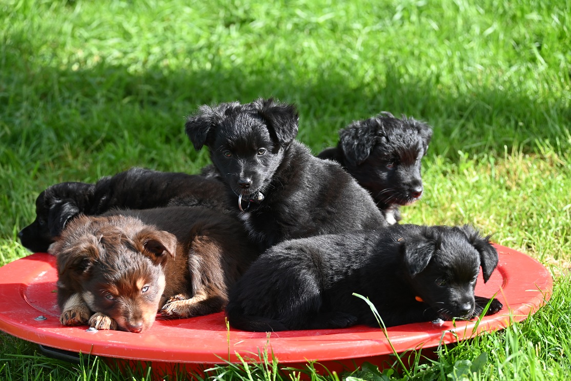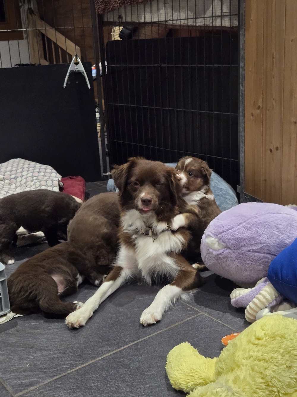 Die Welpen wachsen mit uns integriert in der Familie auf, die ersten 3-4 Wochen sind sie im Hundezimmer dass mit unserem Wohnraum verbunden ist, so hat die Mutterhündin immer die Möglichkeit zu uns zukommen oder sich in das Zimmer zu den Welpen zurück zuziehen - später haben auch die Welpen diese Möglichkeit wenn sie aktiv sind, unser Hundezimmer ist auch mit einer Hundeklappe ausgestattet somit dürfen die Welpen und die Hündin immer in den gesicherten Welpenauslauf. Eine gute Sozialisierung und Kontakt mit anderen Tieren und Menschen ist mir sehr wichtig.